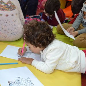 تمت قراءة القصة ثم تلتها أسئلة حولها بالاضافة الى الاستماع الى مواقف مشابهة مر بها الاطفال حول مساعدة ذوي الاحتياجات الخاصة…